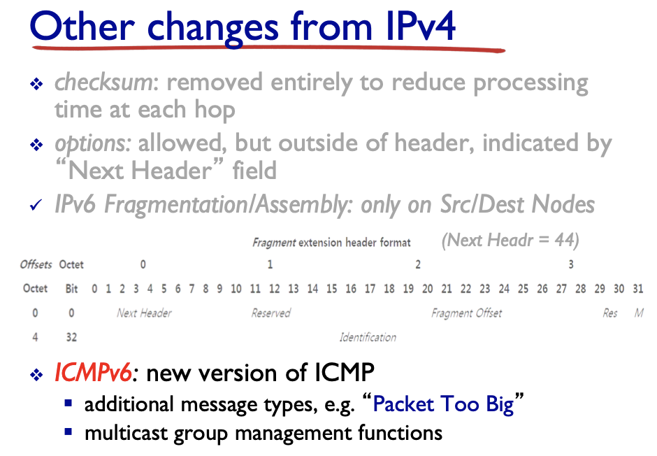+ IPv6는 프로세싱 속도도 증가하고, forwarding 도 금방금방 할 수 있음.