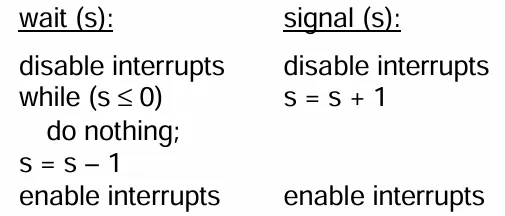 한 CPU에서 인터럽트를 꺼도 다른 CPU에서는 영향이 없으므로 멀티프로세서 지원 불가 또한 위와 마찬가지로 block된 레디큐가 존재하지 않고 여전히 busy wating으로 CPU 시간 낭비