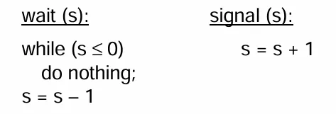 - 공유 변수 s의 값을 두고 P(wait), V(signal) 두 원자적 연산으로 임계구역 접근을 제어