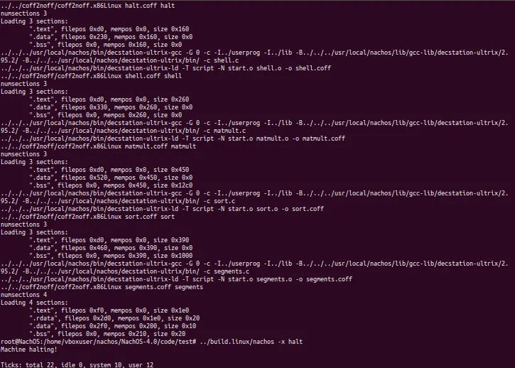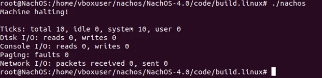 ../build.linux/nachos -x halt #Nachos 시뮬레이터에서 시스템을 종료하는 역할